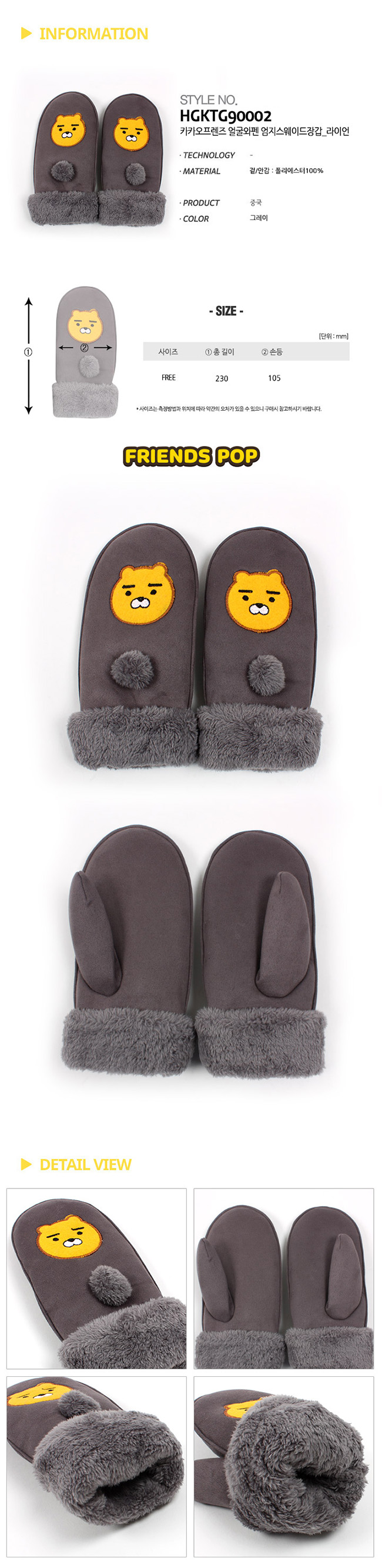 ★Kakao Friends Junior Suede Mittens Gloves★