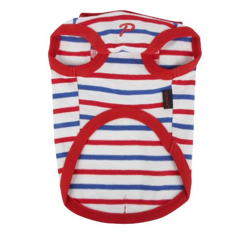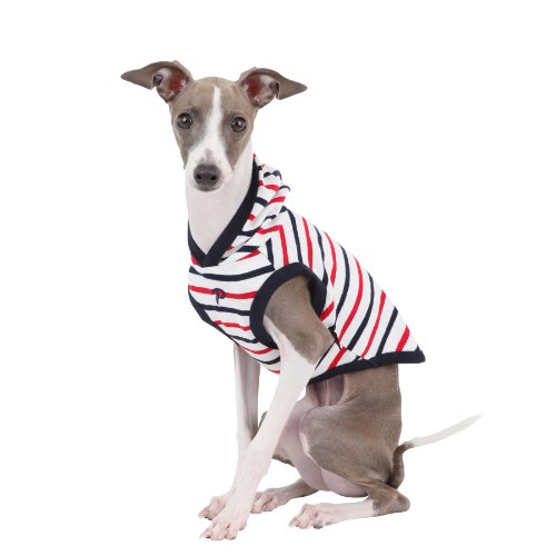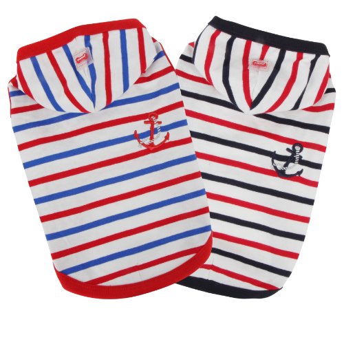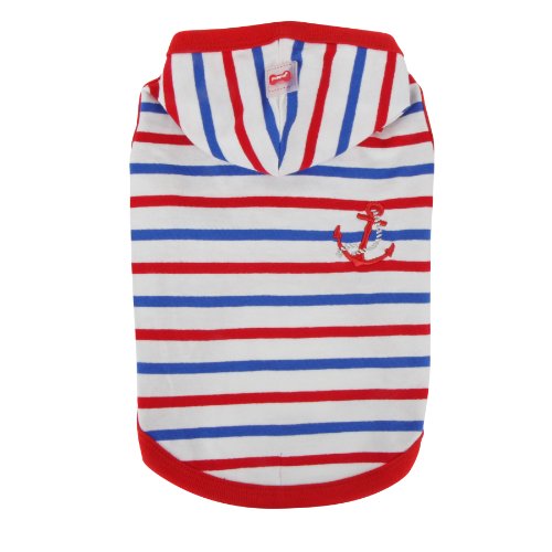 Studio : Puppia Publisher : Puppia Binding : Misc. Product Description Puppia's Admiral Hoodie is made out of natural cotton in a stripe pattern and solid scheme. Decorated with an anchor embroidery on the back, this lightweight hoodie is available in Red and Navy ranging in sizes from Small to Extra Large. Please note that because these products were created with small/medium dog breeds in mind, larger sizes (i.e. Large, Extra-Large, etc.) do not necessarily mean larger breeds. Please refer to image of the size chart. It is very important to measure your dog with a tape measure according to the size chart. As a general rule of thumb, if your dog falls in between sizes, it is usually better to go up a size. Any weight figures are for estimates only. Always use actual measurements. Please note that when measuring your dog for clothing, it's very important to have an accurate measurement of your dog's neck and chest girth. IMPORTANT: Please note that when measuring your dog, the measurement for the neck must be taken at the BASE OF THE NECK and chest girth must be taken behind the front legs. Also it is important to take into account the size of the dog's head as well as neck girth and chest girth. Since some dogs have a much larger head than their neck, please be sure that the neck opening is large enough to slide over your dog's head. 0