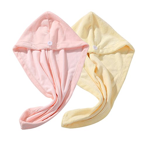 AuroTrends Microfiber Hair Towel Tuban Large Wrap Turban Cap- Ultra Absorbent Drastically Reduce Hair Drying Time (Lemon+Peachy Orange)