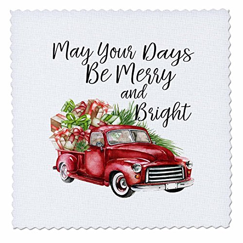 3dRose May Your Days Be Merry and Bright Watercolor Christmas Truck Quilt Square, 14 x 14"