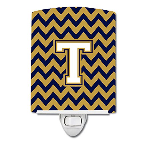 Caroline's Treasures Letter T Chevron Navy Blue and Gold Ceramic Night Light, 6 x 4", Multicolor