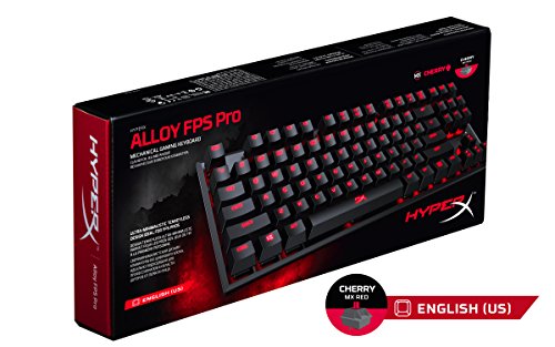 HyperXTM Alloy FPS Pro Mechanical Gaming Keyboard features an ultra-minimalistic, compact design that's ideal for FPS pros. Its tenkeyless design maximizes desktop space for FPS mouse movement. Ultra-portable, HyperX Alloy FPS comes with a detachable, mini-USB braided power cord. For high-precision, gaming-grade key contact and reliability, it features Cherry MX Red mechanical keys.Feature