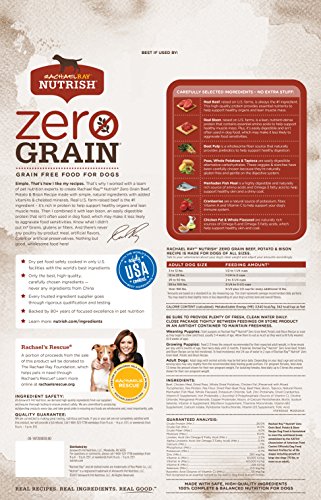 Rachael Ray Nutrish Zero Grain Natural Dry Dog Food, Beef, Potato, & Bison Recipe, Grain Free, 22 lb