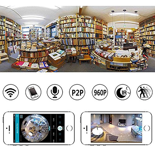 -. Feature : Fast and easy setup / View your camera online Within minutes,with the P2P Server Technology, no complicated port mapping or DDNS settings needed / The 180-degree field of view (wall) or 360 degree (ceiling) ensures that you get to keep an eye on your loved ones or property ¨C with no blind spot, day or night ¨C on your iPhone or Android phone anywhere, anytime / E2 Panoramic wifi camera with an HD fisheye lens, superior night vision and accurate motion detection mechanisms / Clarity, immersive vision and easy use to home monitoring,wall mounted