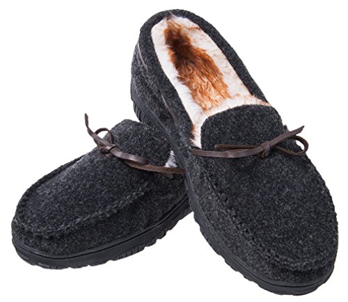 Binding : Apparel Product Description Festooning Men's Thick Plush Lining Moccasin Slippers--BRING YOUR LOVE TO GO AROUND THE WORLD ! ?Classic moccasin style--Featuring Felt upper, slip on design for easy on/off wear and classic Moc Toe Design ?The Festooning Slippers is Only for you and your family to bring a caring and warmth ?Cushioned insole and Thick Plush lined. Its memory-foam insole with extra-thick cushioning system adds maximum walking comfort ?Fashion without having to deliberately ?Add a litter handsome for driving an health set foot fashion design ? Waterproof rubber sole, offering you an anti-slip protection ? Machine or hand washable easy to care ultra light weight (please Machine washed in the laundry bag)