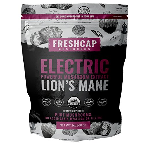 -. Feature : ORGANIC | POWERFUL: Our mushroom supplements are 100% natural, USDA Certified Organic, Non-GMO, Gluten Free, Vegan and Paleo friendly. Cultivated naturally in greenhouses and shade-houses, with constant fresh air, natural light and fresh water. No agricultural chemicals are used in the process of growing our mushrooms. To guarantee purity and quality, every crop of mushrooms is tested to ensure there is no contamination from chemicals or heavy metals. / TESTED AND VERIFIED EXTRACT: This extract is 100% LION'S MANE mushroom. Our Lion's Mane mushroom extract is analytically tested and scientifically verified to contain greater than 25% beta-D-glucans- which is the beneficial compound you're looking for. We use WHOLE MUSHROOM FRUITING BODIES with no filler, mycelium, extra starch or grains. / WHY YOU NEED MUSHROOMS: Taking this mushroom supplement can improve your focus and mental clarity, upgrade your brain and nervous system function and elevate your mood, memory and creativity*. / EASY TO USE: Easily add ELECTRIC Lion's Mane mushroom powder to smoothies, coffee, tea, or food. Scoop included. For beverages, stir well and often for best results. Use daily. The food grade packaging is completely re-sealable. / YOUR SATISFACTION GUARANTEED 100%: We want you to feel amazing and be happy. If for any reason you are unsatisfied with a FreshCap Mushrooms product, we'll make it right with a complete refund. No questions asked. Get what you'd expect from a premium mushroom supplement.