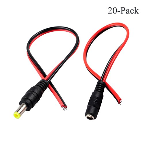 FolioGadgets CCTV Security Camera 2.1mm x 5.5mm DC Power Plug Pigtail Cable, 10 Male + 10 Female