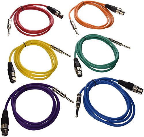 Seismic Audio SATRXL-F6BGORYP 6-Feet XLR Female to 1/4-Inch TRS Patch Cables - Multiple Colors