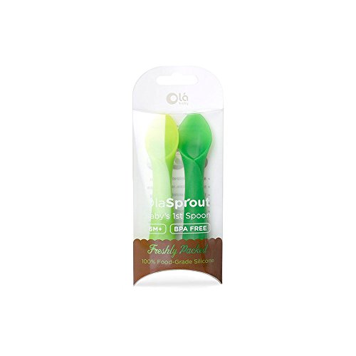 Olababy 100% Silicone Soft-Tip First Stage Baby Training Spoon Teether 2 pack – Green, BPA Free