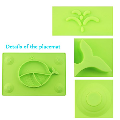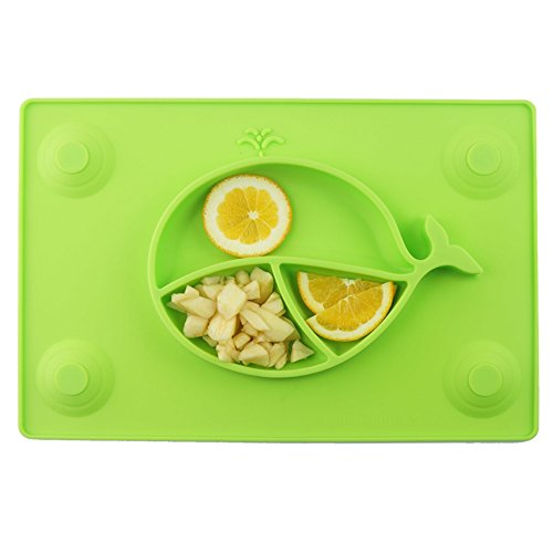 -. Feature : NO MORE MESS: Eliminate messes from tipped bowls with this bright and fun silicone one piece baby placemat. A great toddler placemat, but also perfect for infants 4+ months to kids up to 10 years of age. The one piece silicone placemat measures 38cm /15inch (L) x 25.5cm /10inch (W) x 2.54cm /1inch"(H), fitting many highchair trays. Use our Whale placemat as a pet bowl and eliminate the mess made by food and water with this convenient non-slip suction placemat. Dishwasher and microwave safe. / BEST SUCTION: Nearly impossible to turn over, the one piece whale placemat sticks to almost all flat surfaces which helps to keep mealtime no mess time by keeping food in the bowl and off the floor. The only silicone placemats you will ever need, use it at home or take it on the go with you. / NON-TOXIC & FOOD SAFE: Have peace of mind using the whale placemat from knowing it conforms to FDA Food Safety Standards and is made from high-quality, food grade, BPA free silicone that is also PVC, Lead, and Phthalate free. / EASY TO CLEAN: Clean-up is quick and easy, with the non-stick suction whale placemat. Simply clean with warm soapy water or place in the dishwasher. / 5 COLOR IS AVAILABLE: Mealtime as now become no mess fun time. The bright and cheery colors are loved by kids of all ages making mealtime fun and mess free. 5 beautiful color options are available, choose from pink, lemon green, mint green or light blue.
