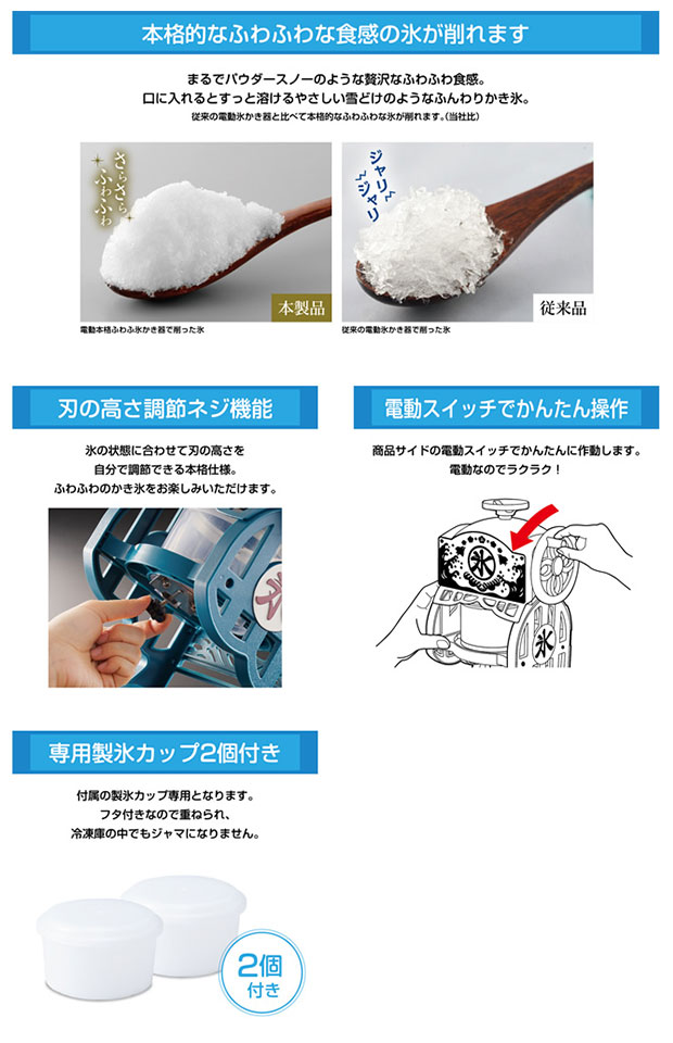 商品名大人電動本格ふわふわ氷かき器 製氷カップ2個付き