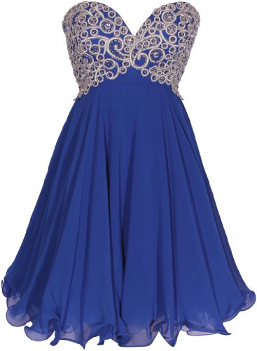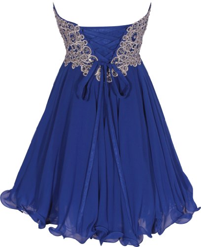 - Title : Chiffon Embroidered Babydoll Prom Dress, Medium, Royal-Silver