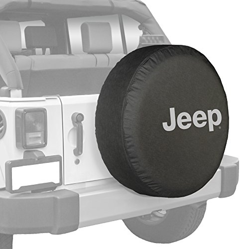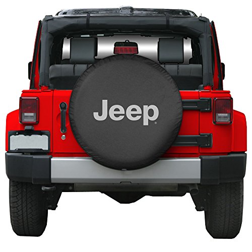 32" Jeep Logo Tire Cover - (Black Denim Vinyl) - Silver Print - Made in the USA