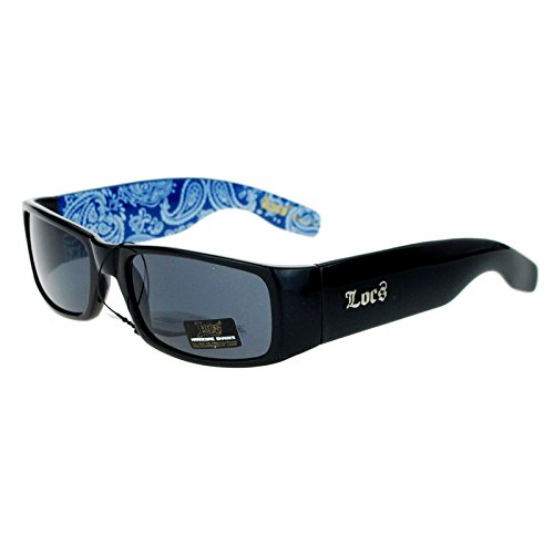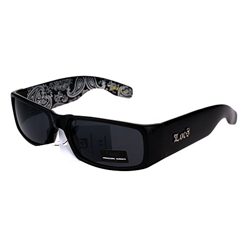 (PASTL)/Accessories/Eyewear/DIRECT FROM USA/Locs Sunglasses Mens Black Rectangular Frame Paisley Bandanna Print