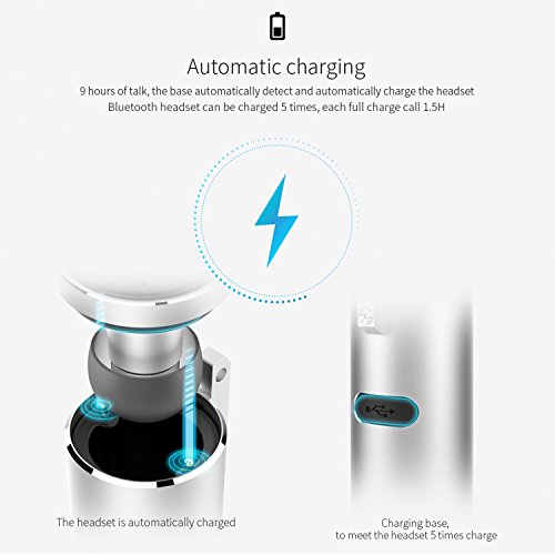 OVEVO Bluetooth Earbud Mini Wireless Earphone True Hand Free Car Headset In Ear Sport Headphone Wearable with Portable Battery Charger for iPhone, Android Cell Phones