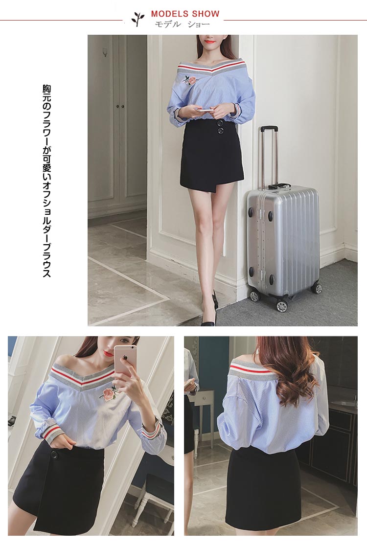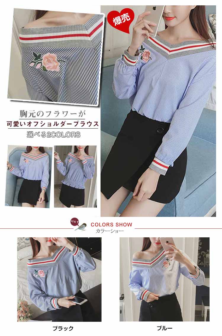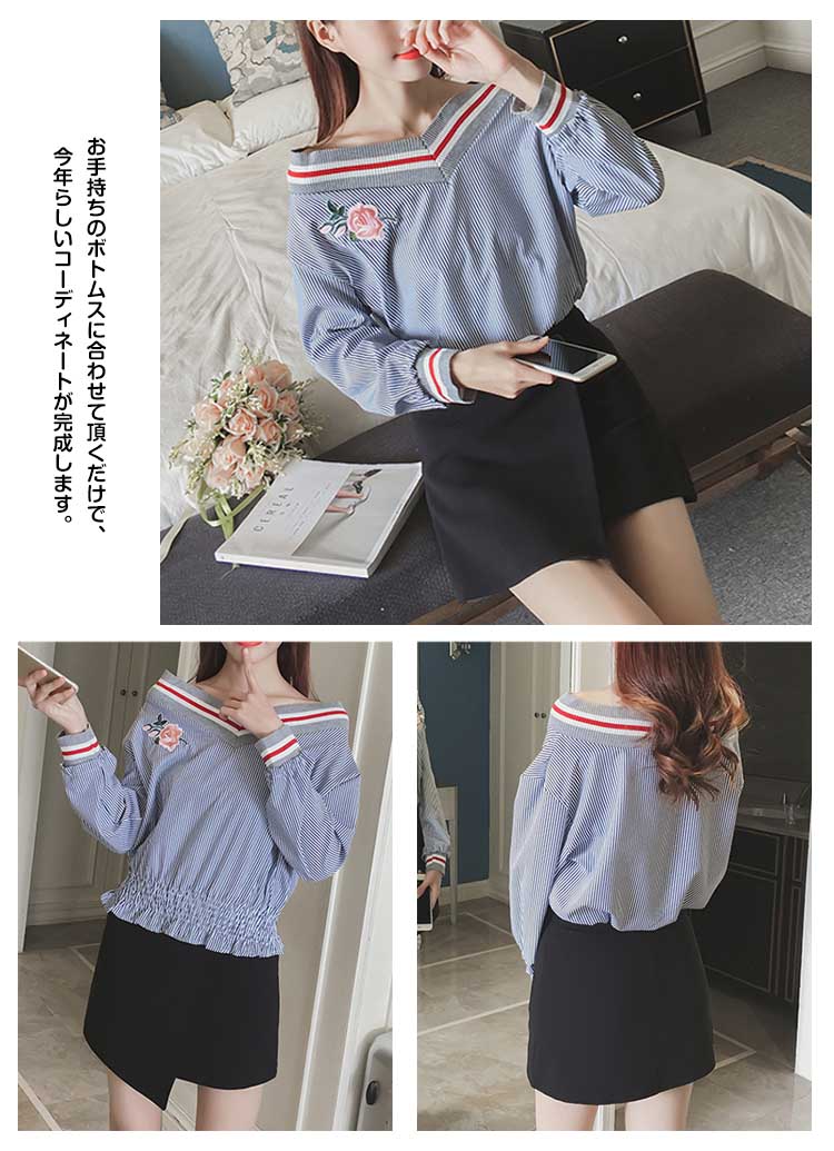 | 胸元のフラワーが可愛いオフショルダーブラウス絶妙バランスユルかわシルエット、トレンドデザインで大人可愛いスタイリング!裾をシャーリングでシすっきりとしたレディなデザインになります。トレンドのボートネックが広くなり、オフショルダー風の今季らしい着こなしを!お手持ちのボトムスに合わせて頂くだけで、今年らしいコーディネートが完成します。 | |