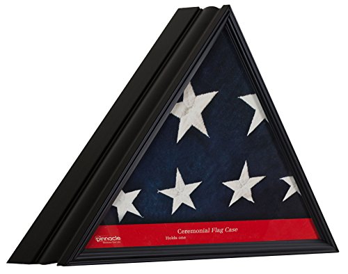 Black wood flag display case measuring 16 by 16 by 22-1/2.