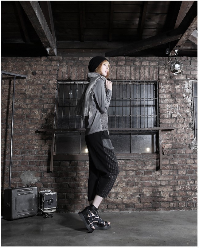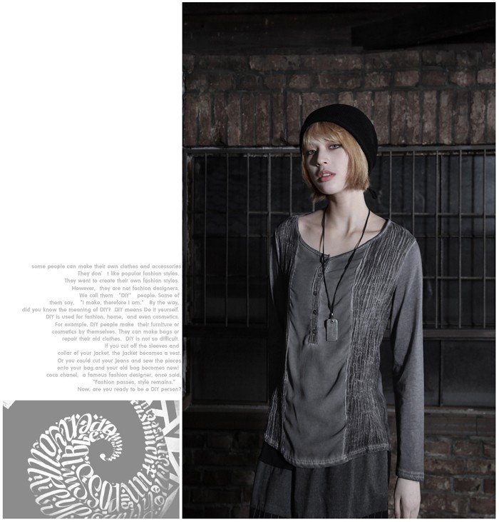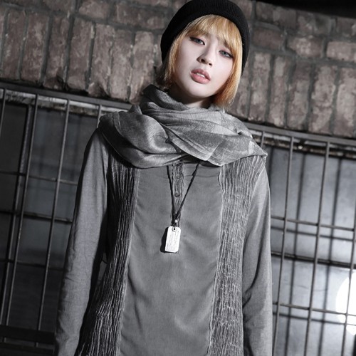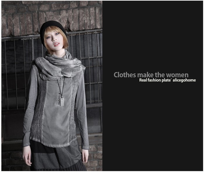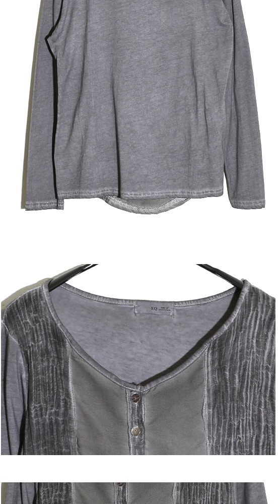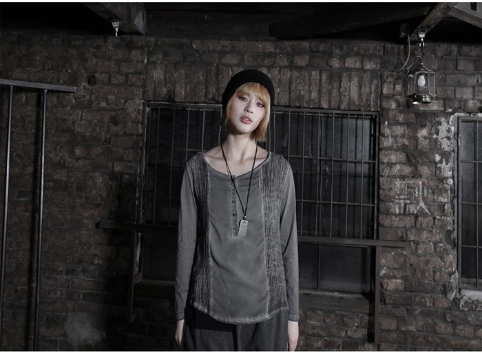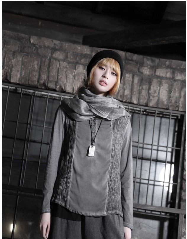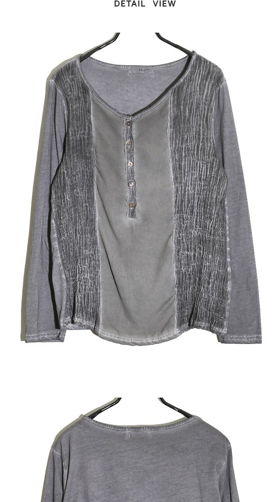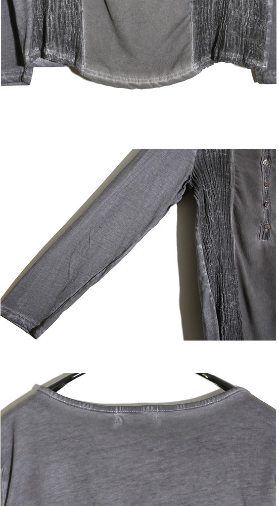 商品名:Tシャツ レディース ヘンリーネック ウォッシングカラー 個性的 長袖 春 2018 モード系 個性的 40代 ファッション