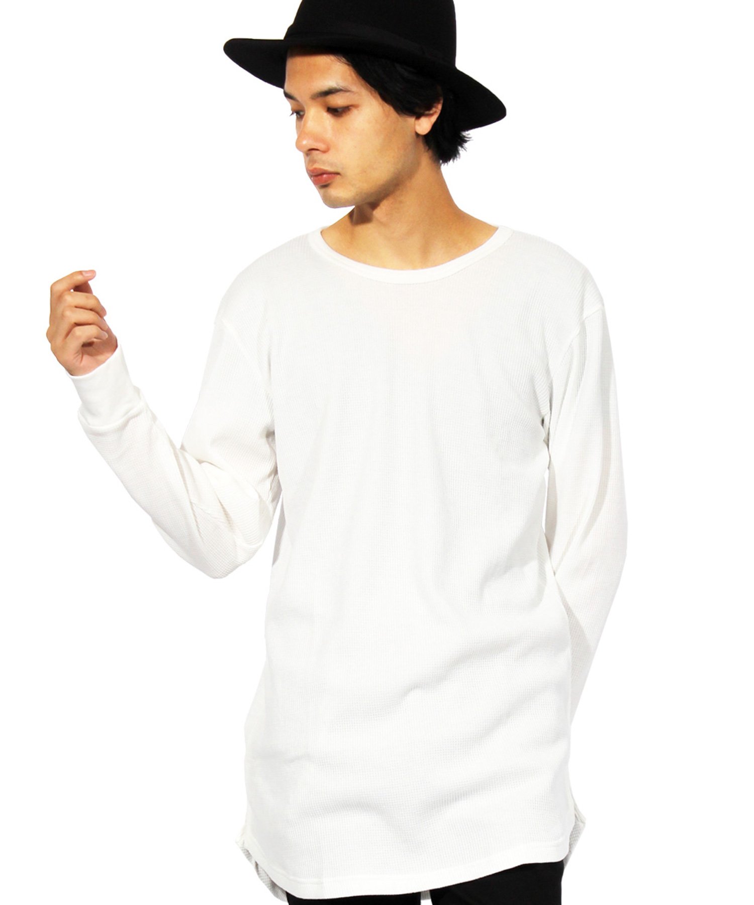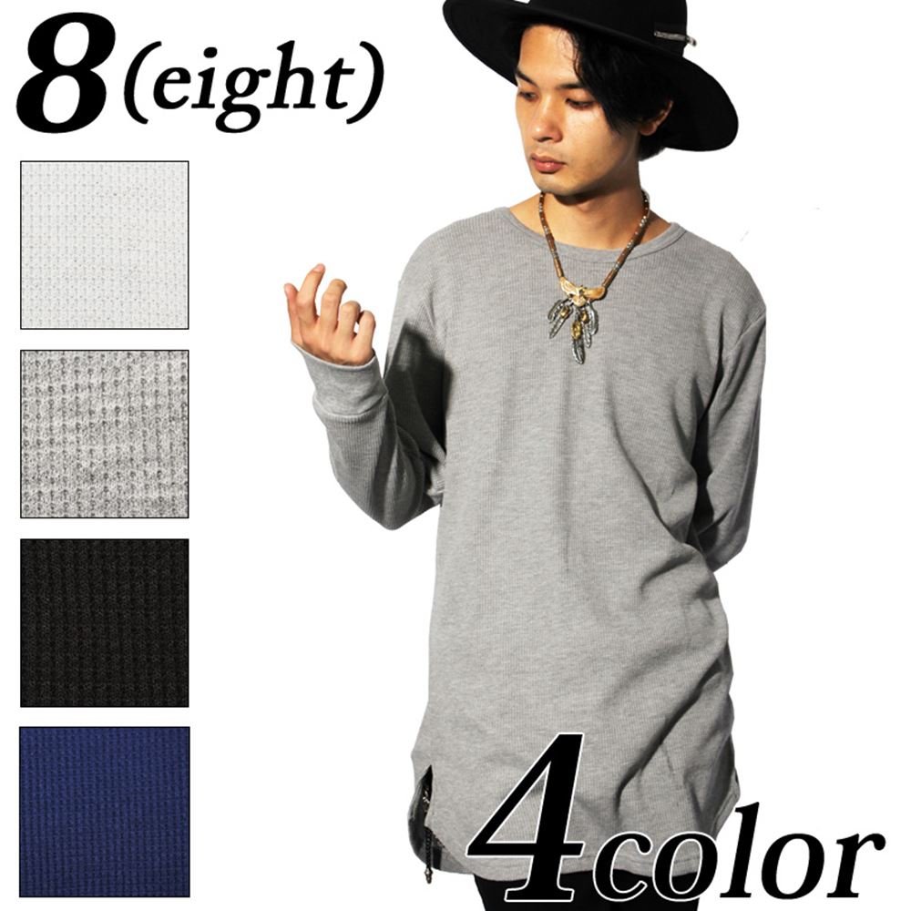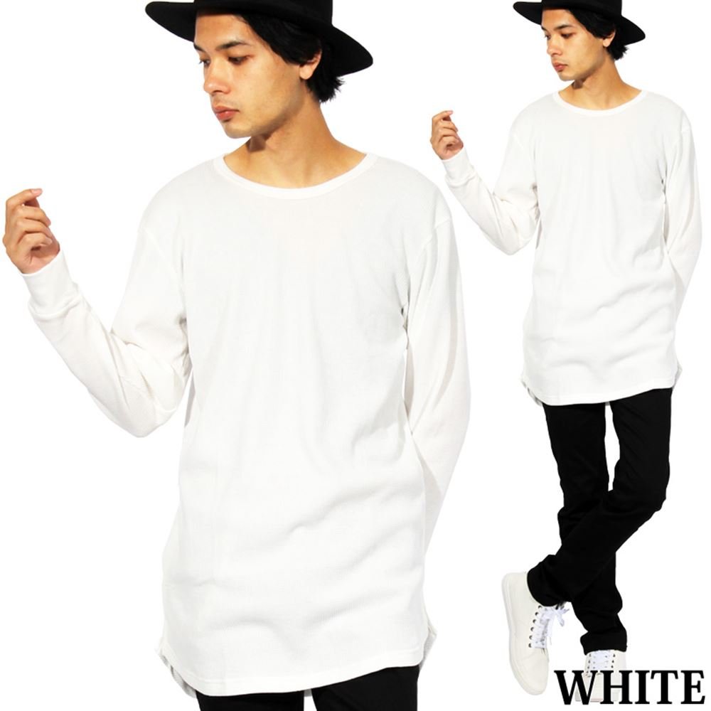 - Waffle Thermal long length long sleeve short-sleeved T-shirt recommended for street American casual style T plain T cut