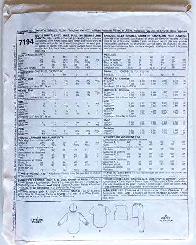 -. Title : McCall's Sewing Pattern 7194 Boys Shirt, Hooded Shirt, Lined Vest, Pull-On Shorts and Pants Nice Variety Size Child 7, 8, 10