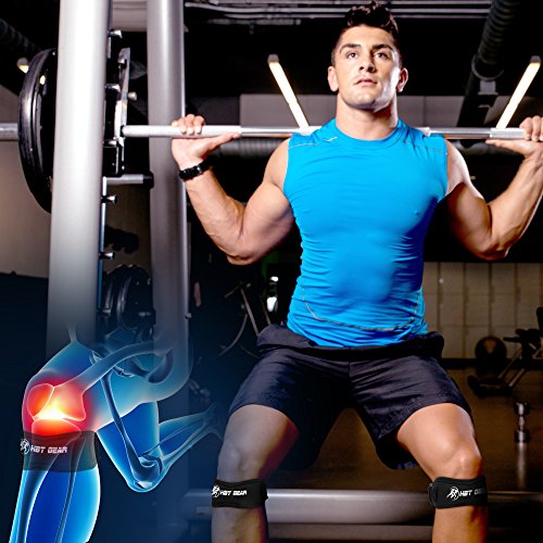 HBT GEAR 2 PACK PATELLA KNEE STRAPS FOR KNEE PAIN - PATELLAR TENDON BANDS & PRE-CUT KINESIOLOGY TAPE INCLUDED - IDEAL FOR WALKING, RUNNING, & SPORTS