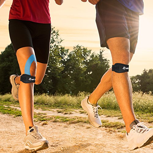 Free Bonus & Discount - Included with your purchase: 4 kinesiology sample strips for FREE to wear with the pair of patella knee strap (for right and left knee). ** LIMITED TIME OFFER** Get 15% off when you buy 2 - Use Code SAVKNEE2. 2 Pack Patella Knee Straps for Knee Pain Relief & 4 kinesiology sample strips (2 inches by 10 inches)