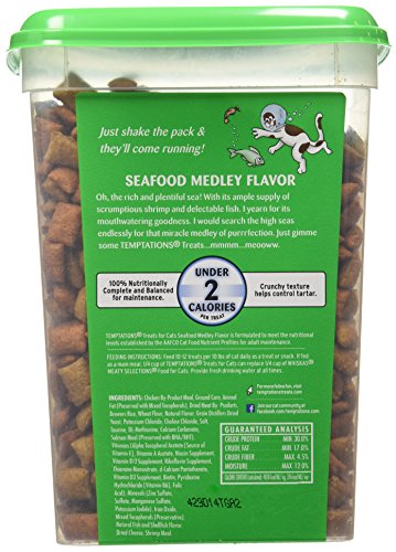 TEMPTATIONS Classic Treats for Cats Seafood Medley Flavor 16 Ounces