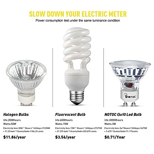 - ★ SAVING MONEY. Pack of 6 Units LED 3W GU10 MR16 NON-DIMMABLE Light Bulbs, a perfect 50W Halogen bulb replacement. Save over 90% on electricity bill.