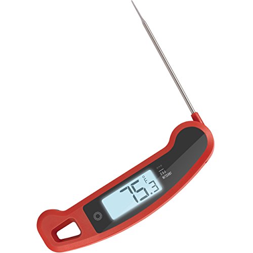 Studio : Lavatools Publisher : Lavatools Product Description Awesome Pedigree The Javelin PRO Duo is a professional food thermometer based on the #1 best-selling thermometer, the Javelin. This larger, top-of-the-line instrument has a 4.5" probe that extends to a total length of 10.75", thus keeping your hands away from the heat when cooking at the grill or in the oven. Display of Progress Using an ultra large 2" antifog backlit display, the Javelin PRO Duo can display spectacularly clear and bright readouts at every angle by automatically rotating itself depending on how the device is held. Intelligent Design The Javelin PRO Duo maintains an outwardly simple appearance, but under the hood is an intelligent software that lets you know when the temperature has stabilized via an audible chime and then holds it. No more twisting your neck and guessing for readings. It is the perfect instant-read thermometer for meats, liquids, candy, and baked goods. Cheap Dangerous Imitators Cheap imitators have flooded the market with slower and less accurate products that aren't approved by any food-safety agencies. Why take the risk? Specifications - Response Time: 3 seconds to within 1°F of final temperature in moving boiling water (212°F) - Accuracy: ±0.9°F @ -4~302°F (±0.5°C @ -20~150°C) - Range: -40~482°F (-40~250°C) - Battery: 1x CR2032 - Battery Life: 4,000 hours - Auto-Off: 60 min - °F/°C Configurable: Yes The Javelin PRO is covered by our 3-Year Warranty. Lavatools Javelin PRO® is certified by NSF, CE, RoHS and is PAT PENDING. 0 |