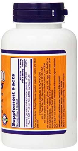 -. Binding : Health and Beauty -. Brand : NOW Foods -. Feature : Non-GMO an Soy-FREE / 400 IU Natural Vitamin E / d-alpha Tocopherol from Non-GMO Sunflower Oil -. IsAdultProduct : 0 -. Label : Now Foods -. Manufacturer : Now Foods -. PackageQuantity : 1 -. ProductGroup : Health and Beauty -. ProductTypeName : HEALTH_PERSONAL_CARE -. Publisher : Now Foods -. Studio : Now Foods -. Title : Now Foods Sun-E 400 IU SF Softgels