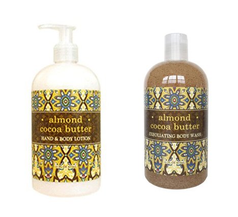 Greenwich Bay Trading Company Botanical Collection Bundle: Almond Cocoa Butter - 16 Ounce Shea Butter Lotion & 16 Ounce Exfoliating Body Wash