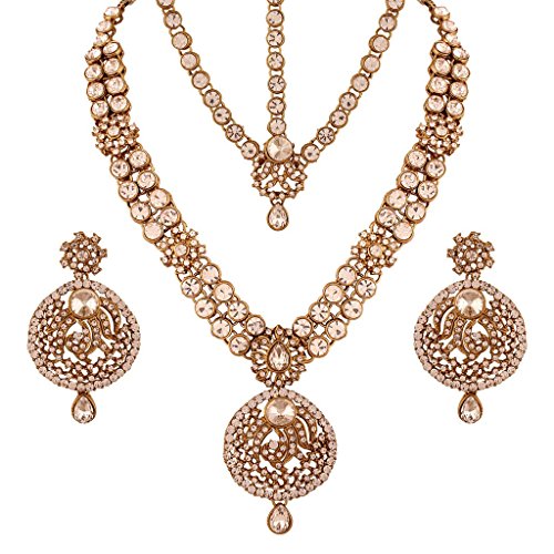 The set is light in weight. It is made from good quality stones and kundan with a blend of gold plating and hence the look of the set is rich. It can be worn in weddings and speical occasions.