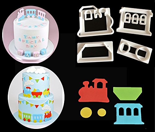 (Set of 4)The Easiest Train Cookie Cutter Set,Children Cookie Cutter Embossing Set,Cup Cake Decorating Gumpaste Fondant Mold
