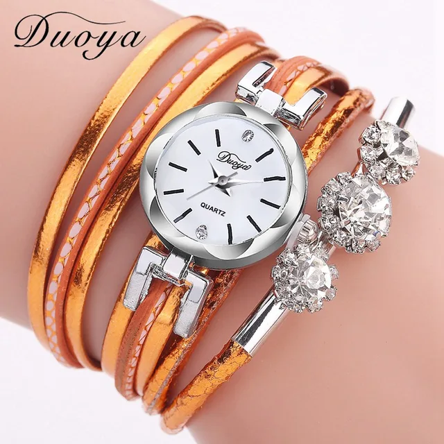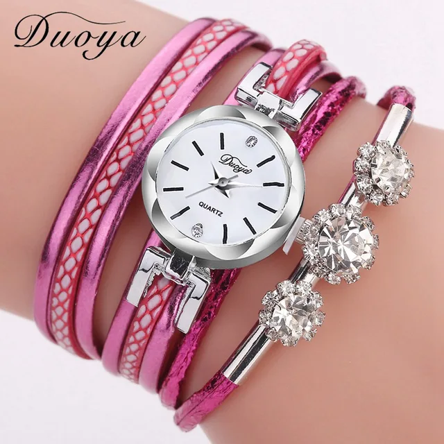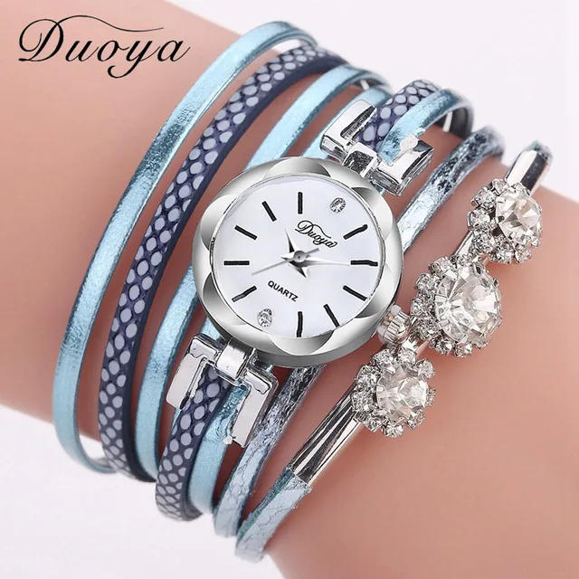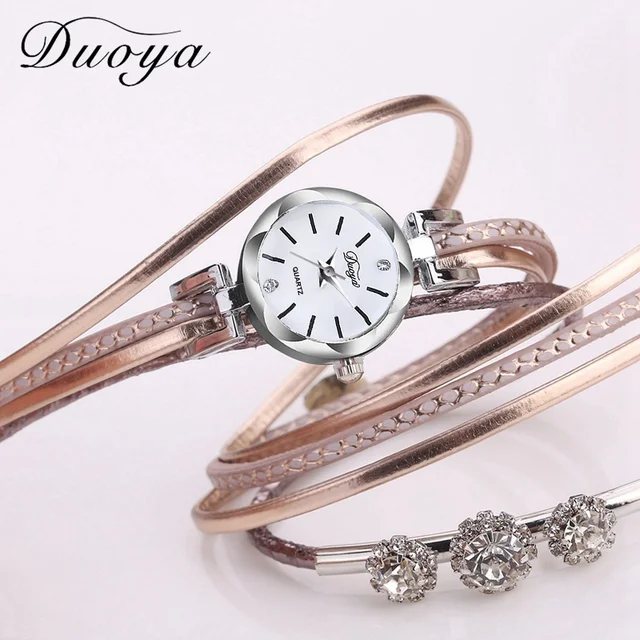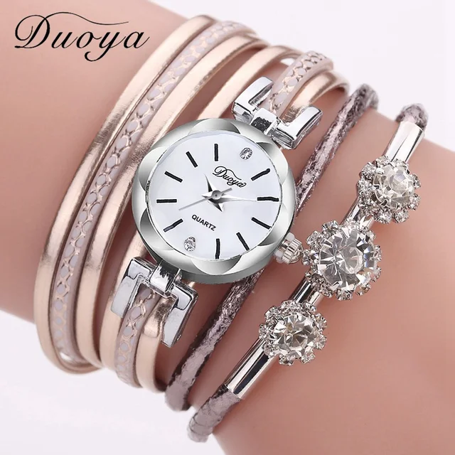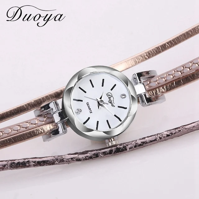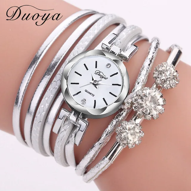 | [해외] Duoya 브랜드 여성 패션 캐주얼 팔찌 시계 PU 실버 손목 다이아몬드 럭셔리 여성 드레스 스포츠 시계 석영 시계 DY145 |