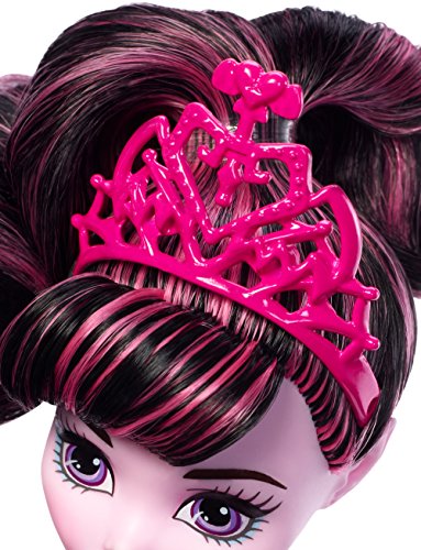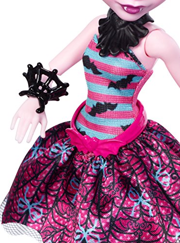 The Monster High dolls steal the spotlight as ballerinas! Gore-geous outfits and performance pieces set imaginations twirling. Draculaura doll wears a ballet costume with a decorated bodice and tutu with tulle underlay. Accessories are ready for center stage: strappy pink dance shoes, webby wrist cuffs, a belt (with bat), a floral necklace and a fangtastic headpiece. A pink bouquet of roses hits the mark for the daughter of Dracula. Bendable elbows, knees, hips and wrists on the 12-inch doll lets creative minds and hands choreograph so many stories! Collect all of the Monster High dolls to cast a world where everyone is welcome -- just like at Monster High (each sold separately, subject to availability). Includes Draculaura doll wearing ballerina fashion and accessories, plus bouquet of flowers. Doll cannot stand alone. Colors and decorations may vary.Feature
