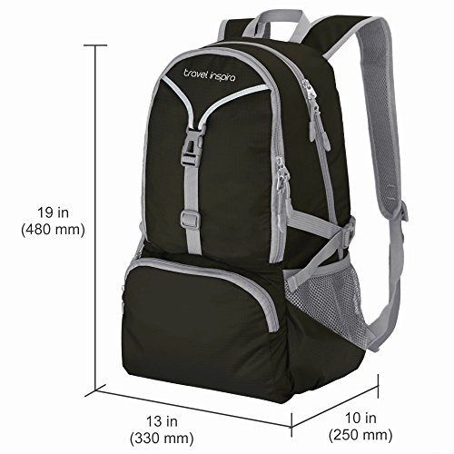 COMPACT - Foldable daypack 19x13x7.5” (48x33x19cm) folds up small into the included pocket 9x7”(23x19cm) for easy transport & space saving. Perfect for travel, hiking, camping & more!