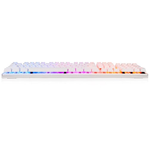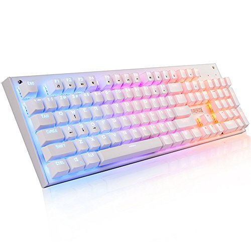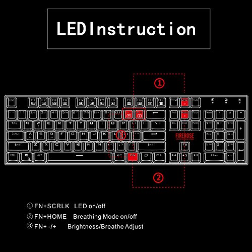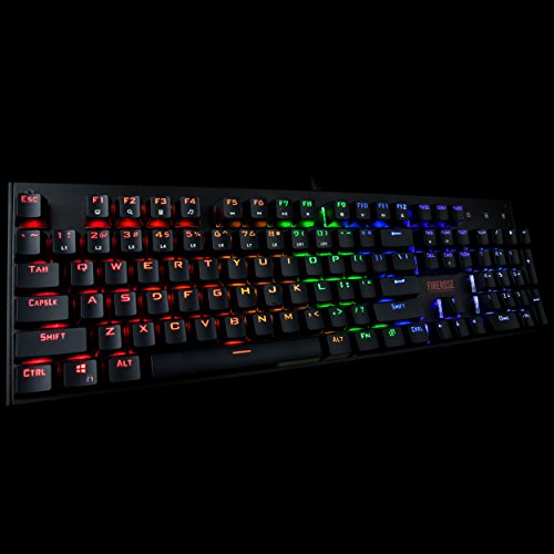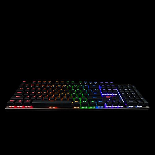 -. Feature : High Quality Mechanical Switch, offering comfortable and ultimate performance, tactile and clicky feedback, Great for typists, programmers, writers and gamers etc / Double-colored injection molded keycaps with long durability and 100% anti-ghosting with 104 key rollover on USB, over 50 million times key-click lifetime. / Chromatic breathing LED effects and 3 phases of brightness setting for keyboard to improve visibility in low-light condition and breathing light effect option on keyboard / 1.8M high quality cable with golden plated USB interface guarantees efficient and stable data transmission / Perfect Water & Dust Proof with 104 floating keys and whole closed water-proof design.(Note: do not put the keyboard under water)