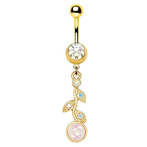 Product DescriptionGold Plated Synthetic Opal Flower Vine Dangle WildKlass Navel Ring0