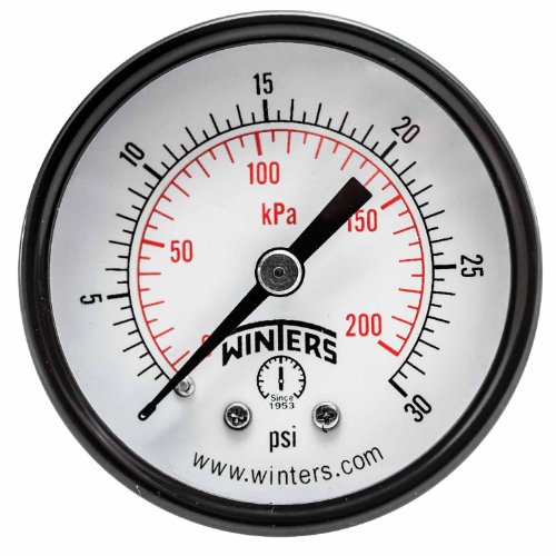 Winters PEM Series Steel Dual Scale Economy Pressure Gauge, 0-30 psi/kpa, 2" Dial Display, +/-3-2-3% Accuracy, 1/4" NPT Center Back Mount