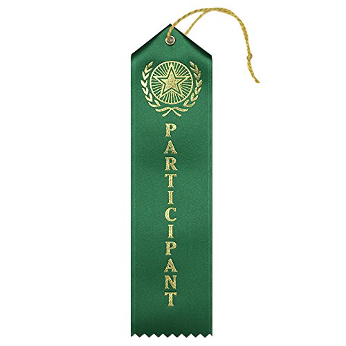 Participant Premium Ribbons with Card & String - 25 Count Metallic Gold foil Print – Made in the USA (Green)