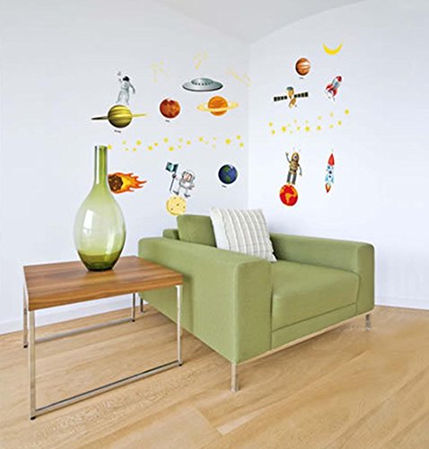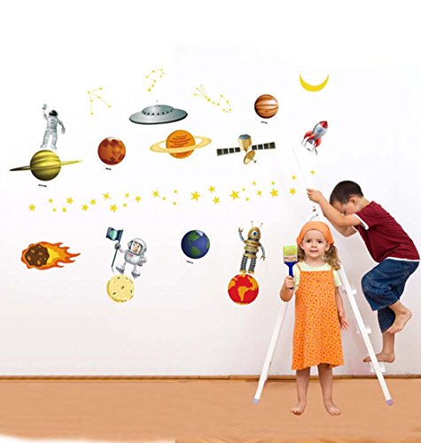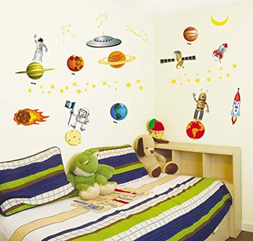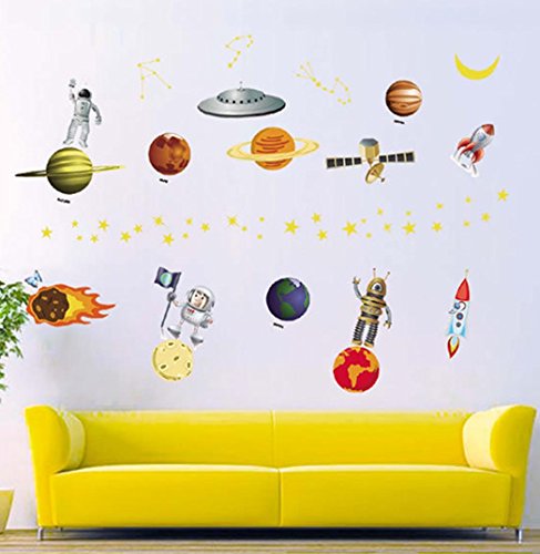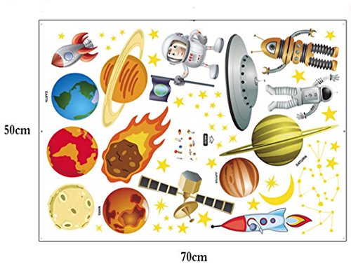 -. Title : BIBITIME Universe Planets Spaceship Astronaut Robot Meteorite Outer Space Wall Decals Sticker for Kids Rooms Decor Earth Satellite Moon Star Vinyl Art Sticker