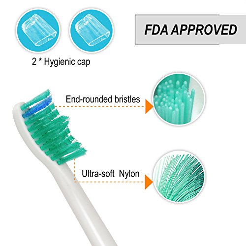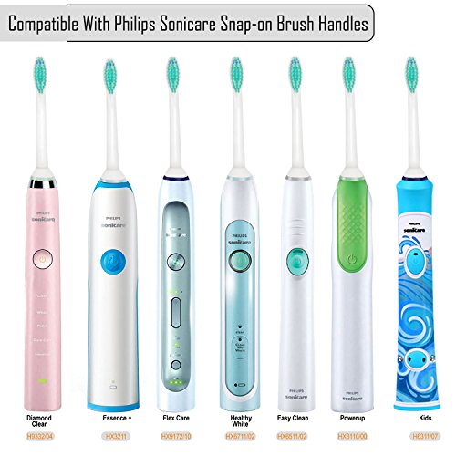 Studio : Aiskki Publisher : Aiskki Binding : Misc. Product Description Aiskki Electric Replacement toothbrush head for the Philips Snap On Handles is a great value,hight quality and guaranteed to provide effective all-mouth cleaning. bring you comfortable brushing experience Highly efficient cleaning It will provide effective all-mouth cleaning to you and your families. Comfortable brushing experience The rounded bristles help prevent gum damage and deliver a comfortable brushing experience. Reminder bristles Our brush head includes reminder bristles to ensure brush head replacement every 3 months. High quality FDA approved; Passed dentist's official health and safety standard Easy click-on installation You can replace it by just one click, making the installing much easier! Fits The Following Sonicare Handles: DiamondClean HX9322 HX9331 HX9332 HX9334 HX9336 HX9340 HX9342 HX9350, HX9351 HX9352 HX9361 HX9362 HX9371 HX9372 HX9381 HX9382 HealthyWhite, HealthyWhite HX8923 HX8911 HX8918 HX6710 HX6712 HX6722 HX6730 HX6732 HX6733 HX6750 HX6761 HX6781 HX6782 HX6780 FlexCare,FlexCare ,FlexCare Platinum HX6921 HX6930 HX6950 HX6972 HX6973 HX6992 HX9140 HX9141 HX9142 HX6970 HX6934 HX6902 HX6903 HX6910 HX6920 HX6932 HX6985 HX9110 HX9111 HX6911 HX6952 EasyClean HX6201 HX6211 HX6212 HX6220 HX6231 HX6221 HX6250 HX6252 HX6253 HX6530 HX6510 HX6511 HX6512 HX6552 Sonicare for Kids HX6311 HX6320 HX6322 HX6330 HX6340 Essence HX3226/22 HX3226/51 HX3216/01 HX3216/13 HX3226/41 HX3216/31 2 Series plaque control HX6220 HX6211 HX6231 HX6201 HX6212 HX6221 HX6250 HX6252 HX6253 3 Series Gum Health HX6631/01 HX6632/09 HX6616/50 HX6616/51 HX6616/52 HX6631/01 PowerUp HX3631 HX3650 HX3631 HX3100 HX3110 HX3120 HX3130 Specification Material: bristles, ultra-soft nylon Package includes 8 x Toothbrush heads 2 x hygienic caps 0