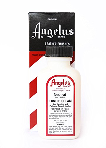 -. Brand : Angelus -. Color : Neutral -. Feature : Luscious lotion cleans all of your smooth leather items / Cream formula makes it easy to apply only in the areas needed / Restores, strengthens and softens old leathers / Will not leave a residue which stains other items / Great to use on leather shoes, boots, bags and lage -. Label : Angelus -. Manufacturer : Angelus -. NumberOfItems : 1 -. PackageQuantity : 1 -. ProductGroup : Automotive Parts and Accessories -. ProductTypeName : AUTO_ACCESSORY -. Publisher : Angelus -. Size : 3 Ounces -. Studio : Angelus -. Title : Angelus Leather Lustre Cream - 3 Ounces, Neutral