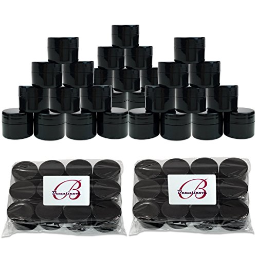 Beauticom® 36 Pieces High Quality 7G/7ML (0.25oz) BLACK Sturdy Thick Double Wall Plastic Conatiner Jar with Foam Lined Lid for Scrubs, Oils, Salves, Creams,...