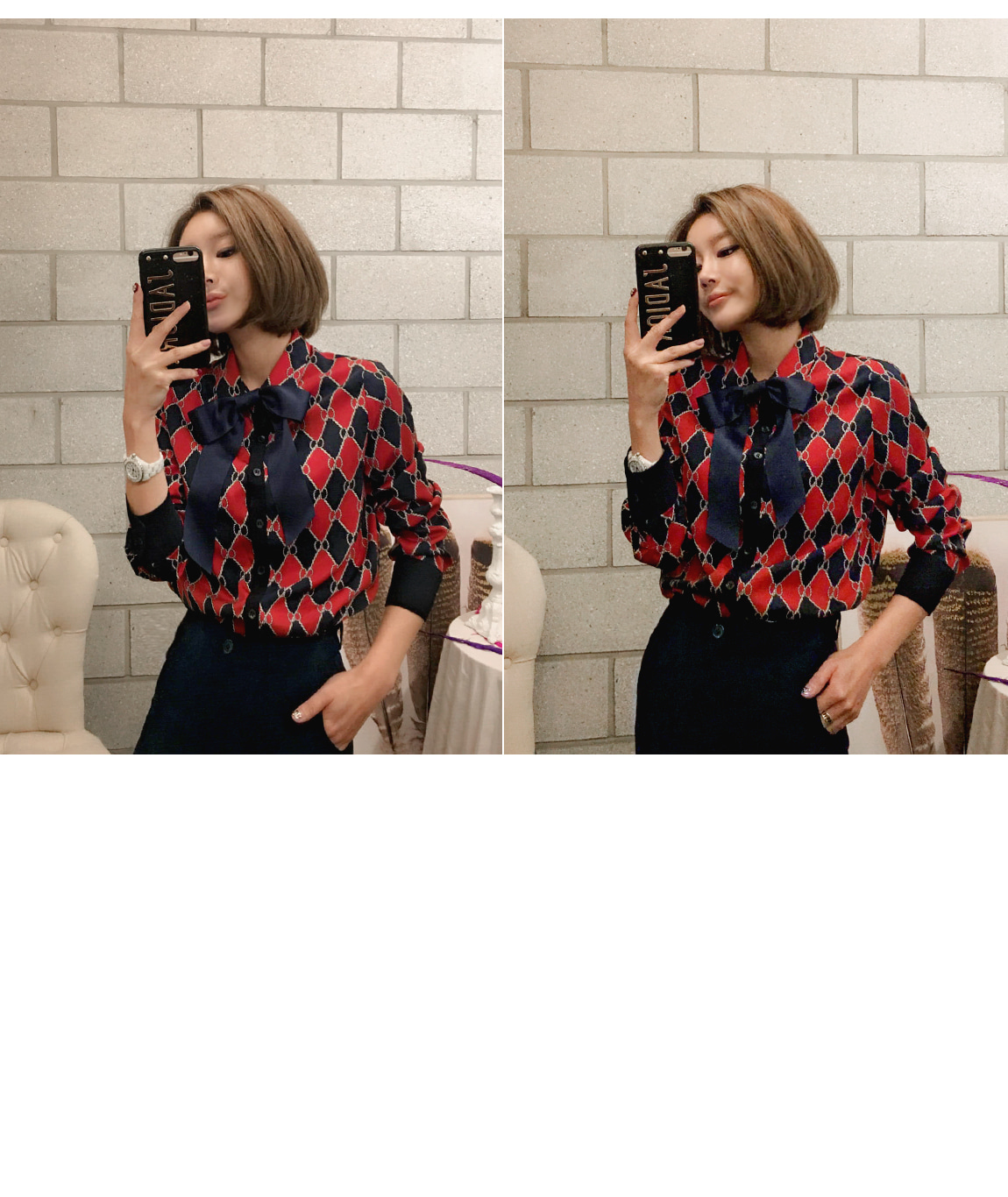 ゴルリスィしたムードが感じられるブラウスです