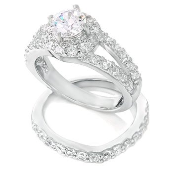 - Title : Sterling Silver Cubic Zirconia CZ Wedding Engagement Ring Set Sz 9