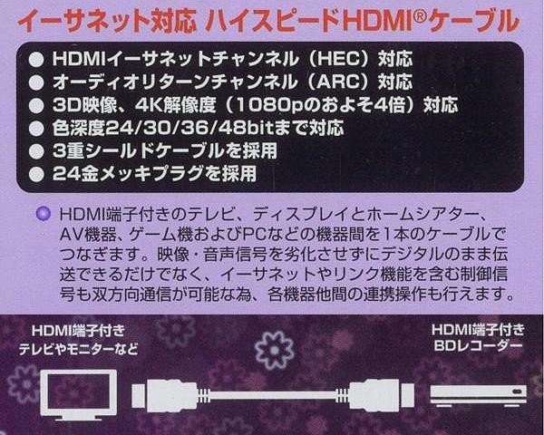 | HDMI付きの機器同士を1本でつなげるケーブル。 |