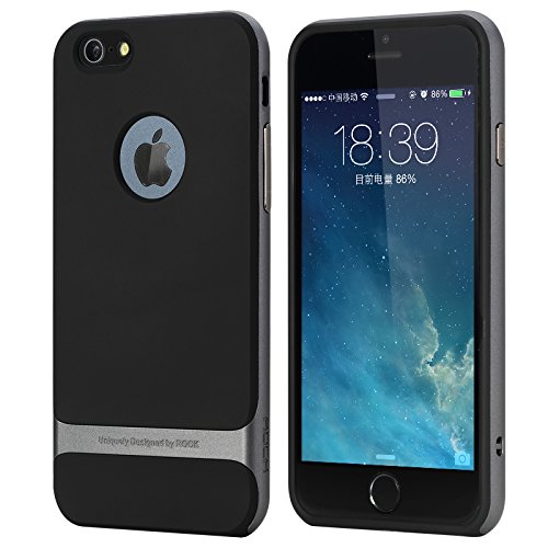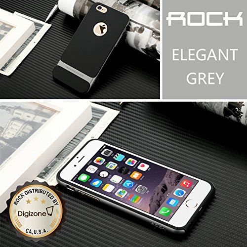 iPhone 6/6s 4.7" Case,ROCK® [Royce] Anti-scratch Drop Protection Ultra Thin Slim Fit Dual Layered Heavy Duty Armor Hybrid Hard PC+Soft TPU Protective Shell Case for Apple iPhone 6/6s - Iron Grey/Black