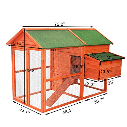 -. Feature : Large outdoor run for optimal space to roam / Wood is well ventilated but keeps your chickens warm and comfortable / Heavy duty galvanized wire helps keep birds in and predators out / Assembly required, all necessary tools included / Overall Size: 71.2"L x 37.4"D x 49.6"H
