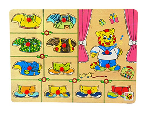 -. Title : New Listed Children's Early Education Toys Wooden Enlightenment Educational Toys Cognitive Plate Matching Knob Puzzle-OG(The Kitten To Change Clothes)